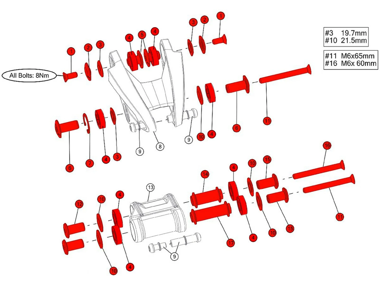Kit de visseries de suspension arrière avec roulements pour Speedfox et Agonist à partir de l’année modèle 2018.